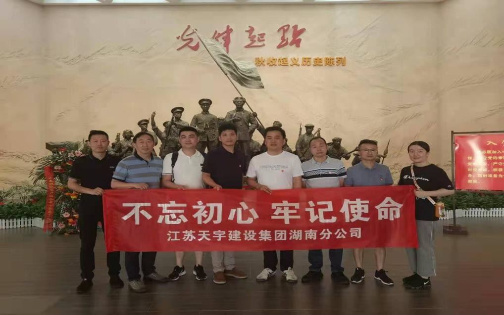 为隆重纪念中国共产党成立100周年,缅怀先辈丰功伟绩,重温当年波澜壮阔的红色历史,学习传承革命先烈的革命薪火,发扬革命者的大无畏奋斗精神,进一步坚定理想信念,切实增强广大党员干部做好新形势下党建工作的责任感和使命感,全力提高党建工作的水平。6月7日,中共江苏天宇建设集团有限公司长沙党支部全体党员前往湖南省浏阳市文家市秋收起义纪念馆和平江县平江起义纪念馆参观学习,对党员干部进行了一次深刻的爱国主义和革命传统教育。